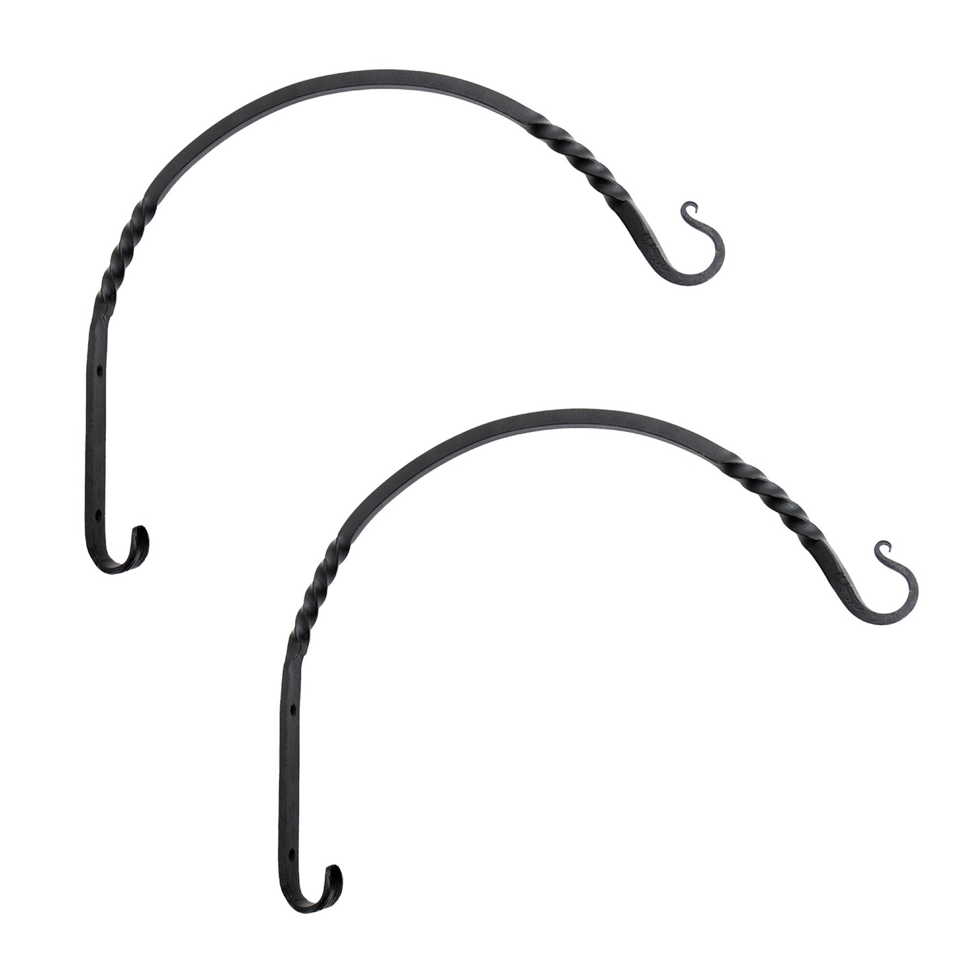 The Heavy Duty Arc Bracket has a beautifully detailed hook in a traditional wrought-iron style. This sturdy hook is made of square stock and has two sets of twists with a curled hook end. The bracket arches far enough to hold a larger birdfeeder or heavy basket securely. Available in two sizes and sold in a pack of two.