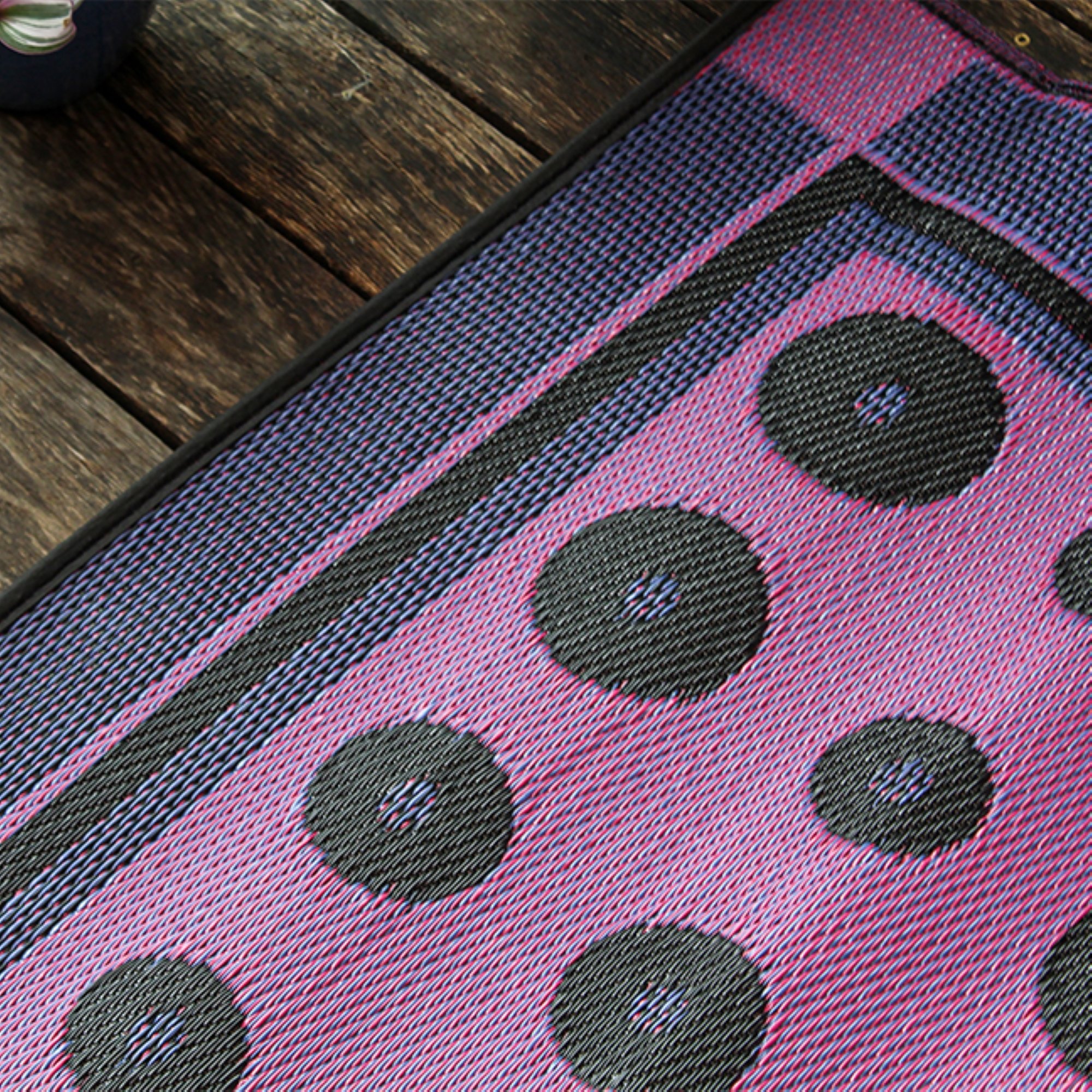 Color the ground you walk or sit on with these polyurethane woven floor mats! Spread them out at the beach, on the porch, or kitchen floor. They are soft on the feet and easy to wipe clean, making them great for picnics and playrooms alike. Available in so many patterns, shapes and colors, you can create great accents anywhere. We recommended using carpet tape to hold them in place indoors. Our mats are made to last, but like everything else, we need to take good care of them. Keep rolled when not in use and avoid leaving mats exposed to sun or rain for long periods of time. Wash by hand and allow to drip dry.