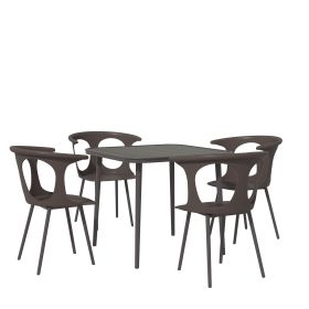 5 Piece Patio Dining Set with Cushions Black Poly Rattan (Color: Black)
