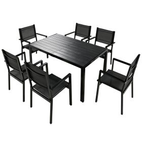 GO 7 Pieces Patio Dining Set, All-Weather Outdoor Furniture Set with Dining Table and Chairs, Acacia Wood Tabletop, Metal Frame, for for Garden (Color: as Pic)