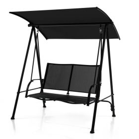 2-Seat Outdoor Canopy Swing with Comfortable Fabric Seat and Heavy-duty Metal Frame (Color: Black)