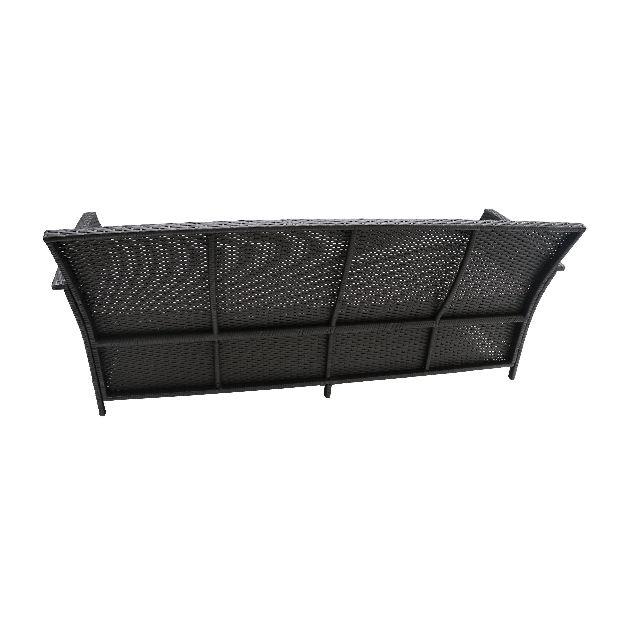 This three seater sofa is the perfect addition to any backyard or patio. Featuring a sturdy wicker construction over a steel frame, this sofa is not only well built, but stylish as well. With slightly curved arm rests for a hit of flair along with a seat cushion for maximum comfort, this safe is a must have. Enjoy it in your back yard today.