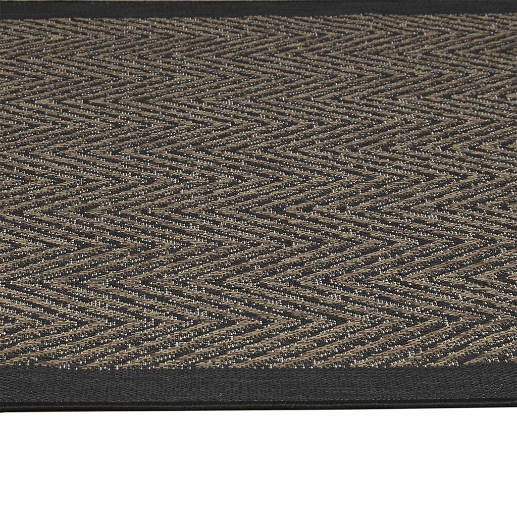 DescriptionStyle your home or patio with the Madison Park Dover Textured Chevron Indoor/Outdoor Rug. Made in Turkey, this polypropylene area rug features a textured flatweave chevron pattern in a natural hue with a black border, for a classic look. Stain and fade resistant, this indoor/outdoor rug is durable for all seasons and easy to clean.Product Details5x7'1 Rug:5'3"x7'Material100% Polypropylene