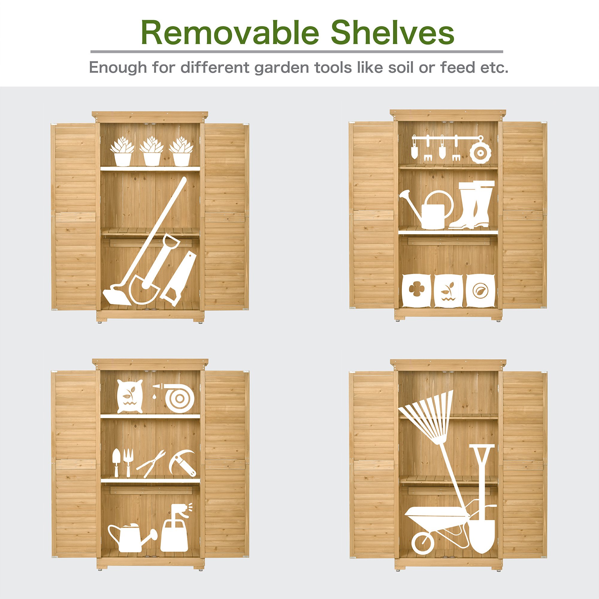 TOPMAX Wooden Garden Shed 3-tier Patio Storage Cabinet Outdoor Organizer Wooden Lockers with Fir Wood (Natural Wood Color -Shutter Design)
